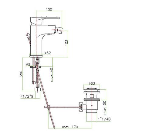 - Длина излива: 100 мм
