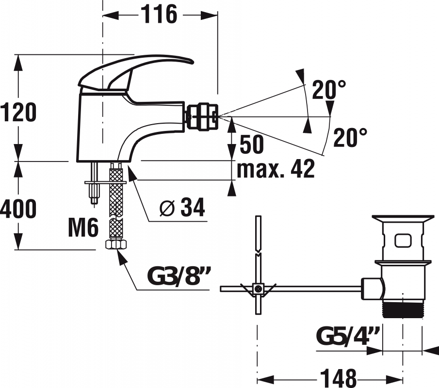1) Смеситель для биде Jika Lyra Plus однорычажный с донным клапаном хром