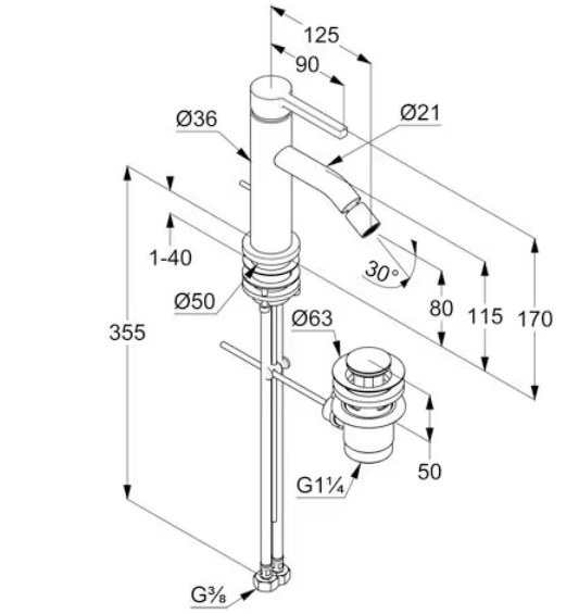 - донный клапан G 1 1/4 из металла