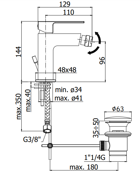- Размер врезного отверстия: min. Ø 34 мм, max. Ø 41 мм