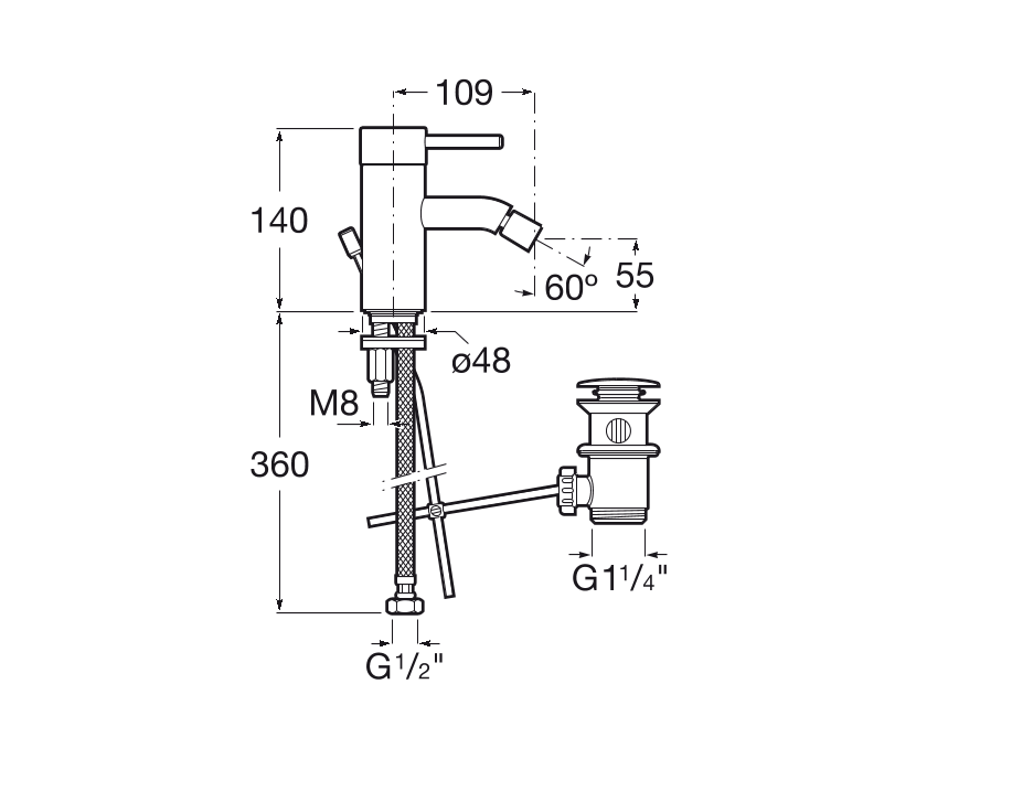 Смеситель для биде Roca Lanta однорычажный с донным клапаном