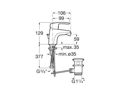 Смеситель для биде Roca Monodin-N однорычажный с донным клапаном A5A6098C00