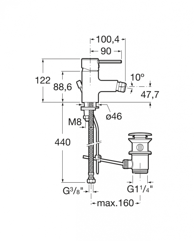 Смеситель для биде Roca Targa однорычажный с донным клапаном