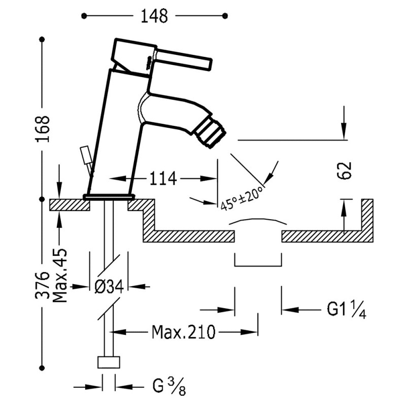 Смеситель для биде Tres Alplus однорычажный с донным клапаном хром 20392001D