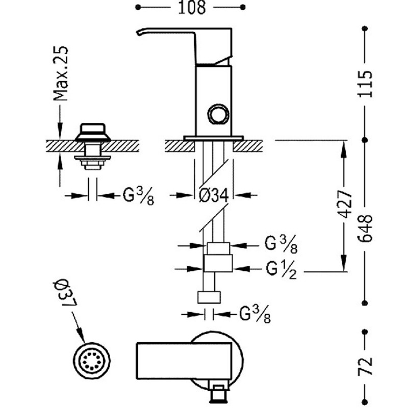 Смеситель для биде Tres Cuadro однорычажный с небольшой душевой лейкой сталь