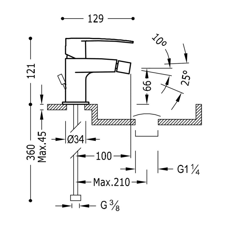 Смеситель для биде Tres Flat-tres однорычажный с донным клапаном хром