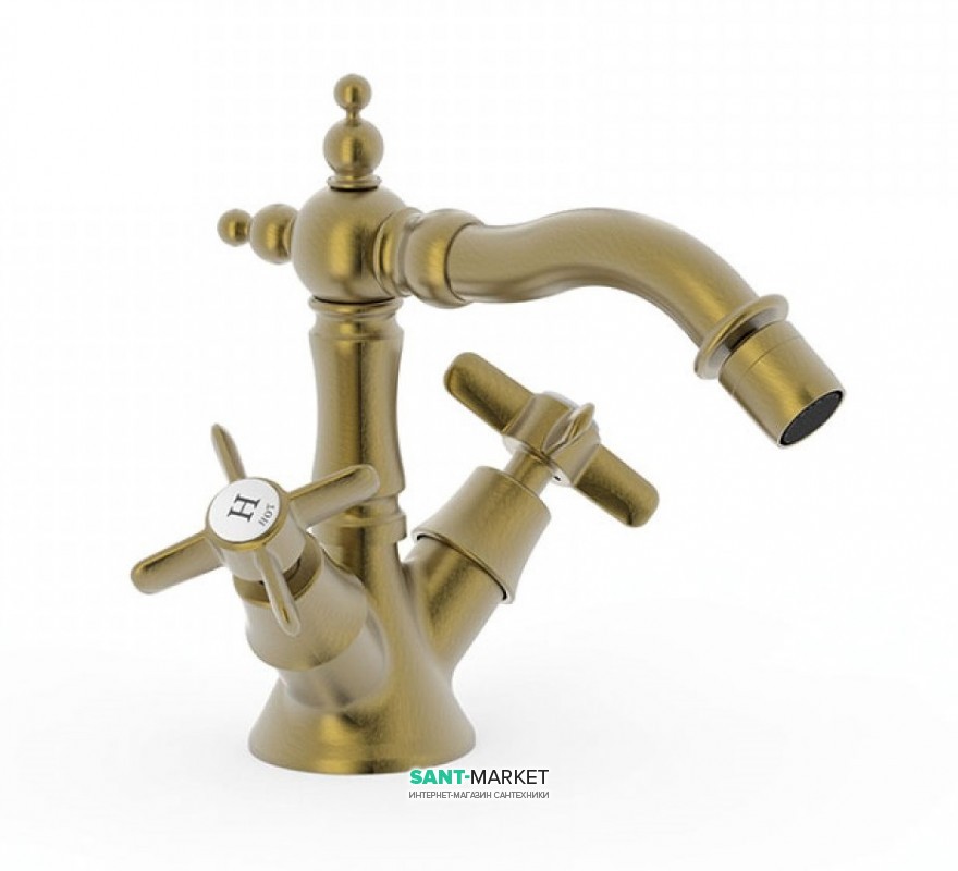 1) Смеситель для биде Tres Tres-Сlasic двухвентильный состаренная латунь матовая