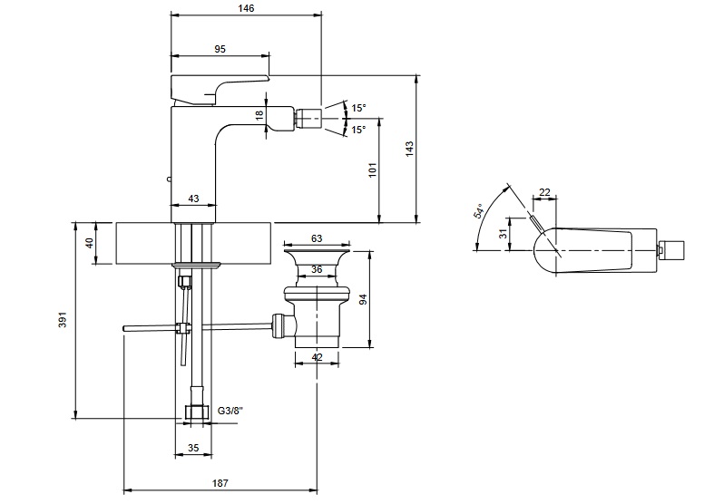 Смеситель для биде Villeroy & Boch Liberty с донным клапаном хром TVB10700100061