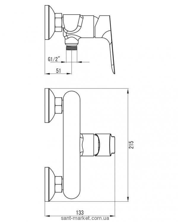 Смеситель для душа наружный однорычажный Imprese коллекция Kucera хром 15105