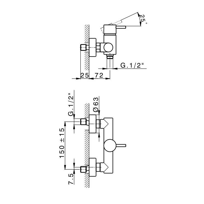 Смеситель для душа Devit Art настенный однорычажный латунь черный матовый 15015140B