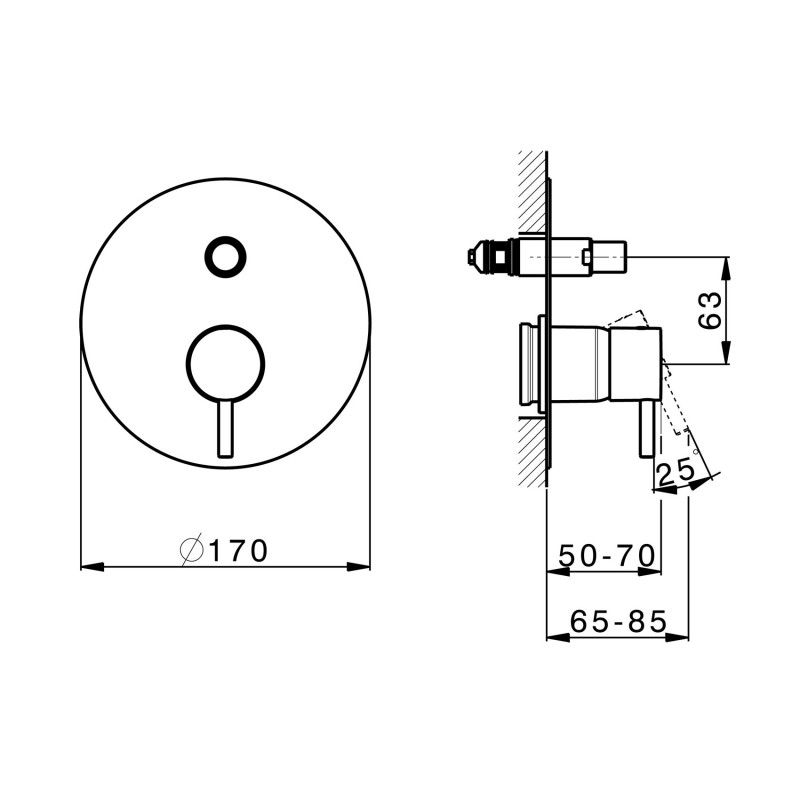 1) Смеситель для душа Devit Art скрытого монтажа однорычажный с переключателем на 2 пользователя латунь черный матовый