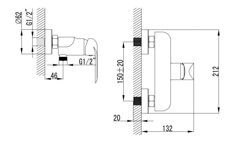 1) Смеситель для душа Devit Iven однорычажный латунь хром