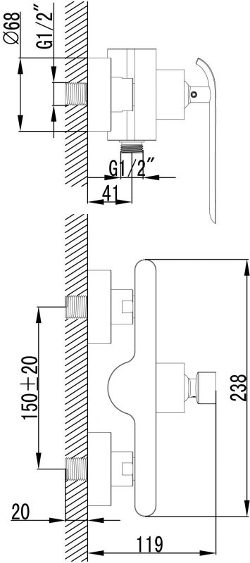 1) Смеситель для душа Devit Katarina однорычажный латунь хром