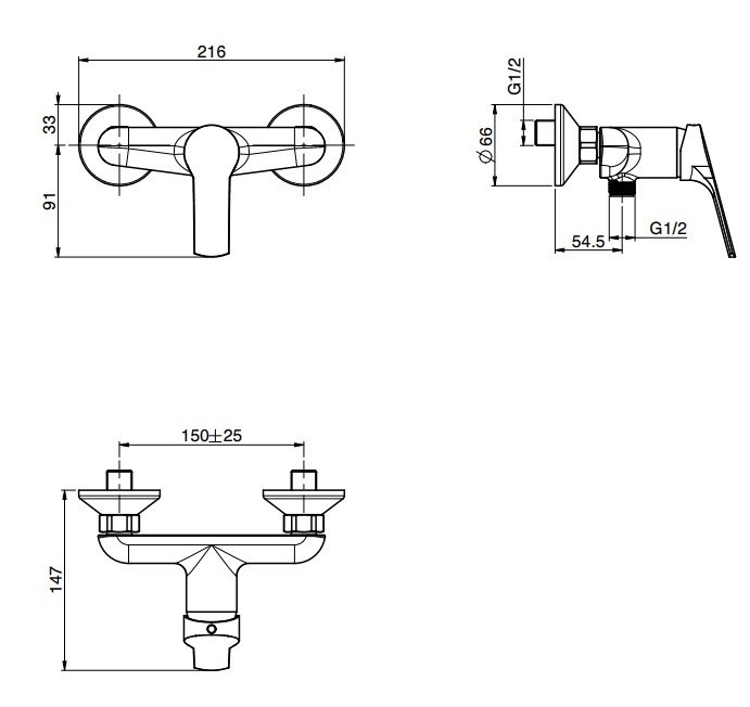 - Отвод для душа: G 1/2