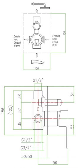1) Смеситель для душа Fiore Kube скрытого монтажа белый матовый