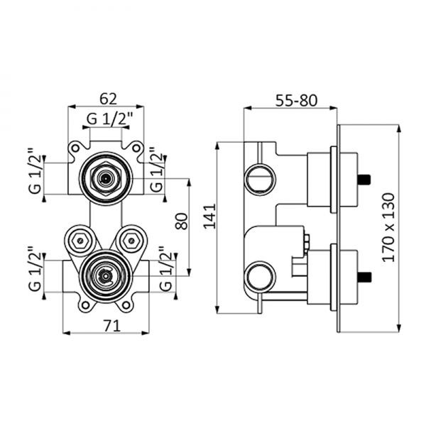 1) Смеситель для душа GRB Despertar скрытого монтажа термостатический хром