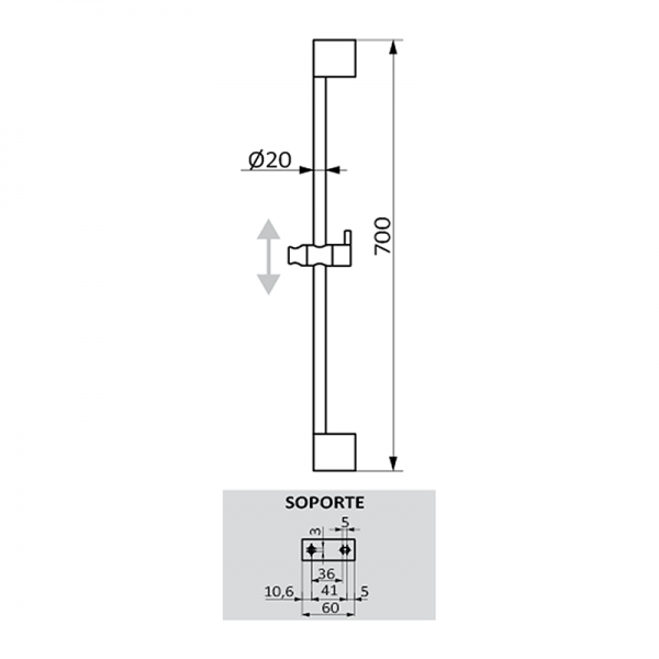 - душевая стойка: Ø20 мм, высота 700 мм, фиксированная