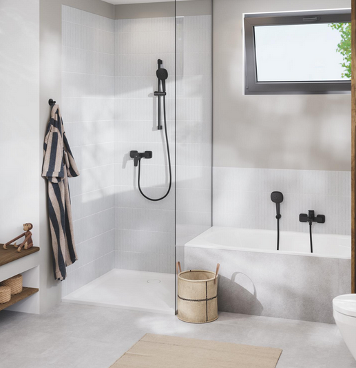 Смеситель для душа Grohe Cubeo с душевым гарнитуром черный матовый