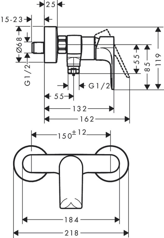 Смеситель для душа Hansgrohe Rebris E однорычажный черный матовый 72650670