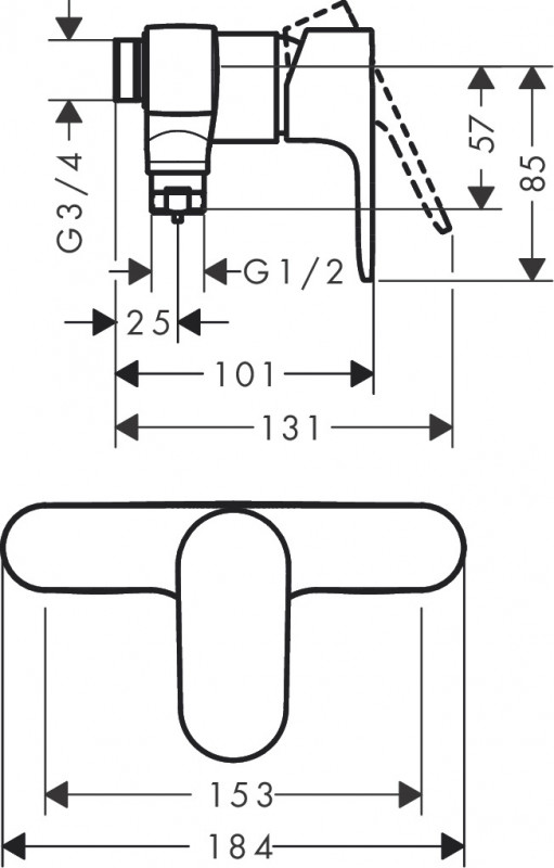 Смеситель для душа Hansgrohe Rebris S однорычажный хром 72642000