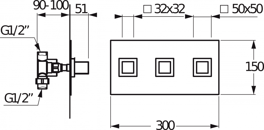 Смеситель для душа Jika Cubito-N двухвентильный на 3 потребителя хром