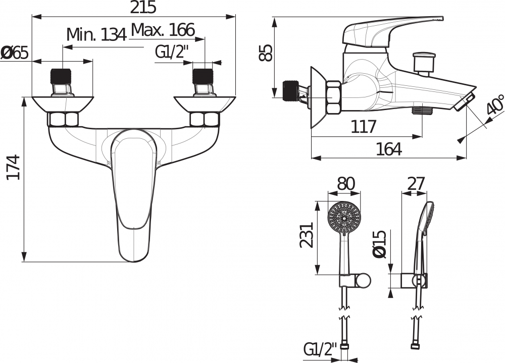 Смеситель для ванной Jika Deep однорычажный с ручным душем хром