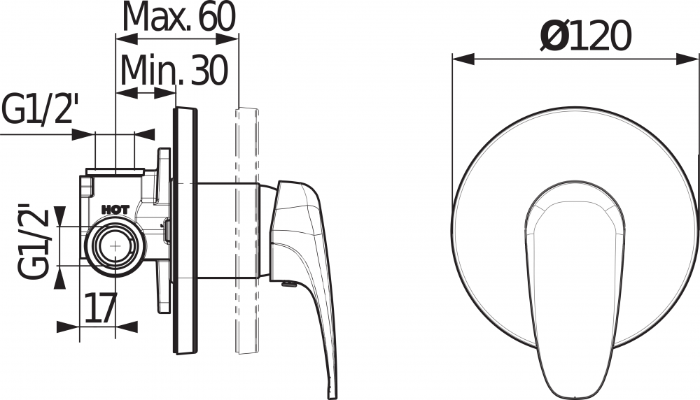 Смеситель для душа Jika Deep встраиваемый однорычажный хром H3311U60040001
