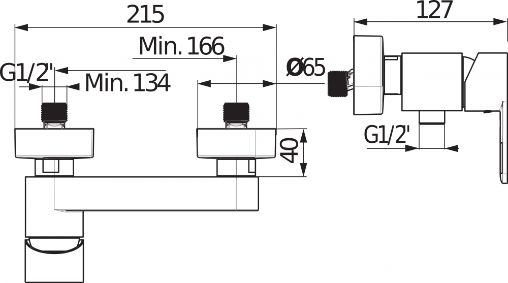 1) Смеситель для душа Jika Mio-N однорычажный хром