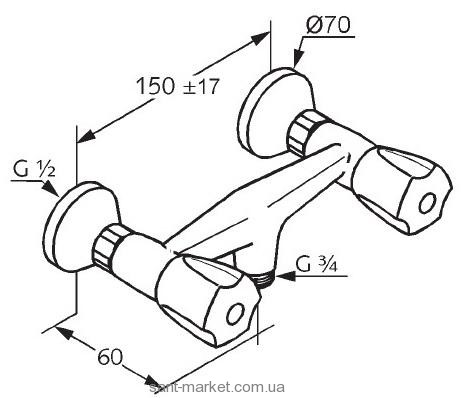 Смеситель для душа настенный двухвентильный Kludi коллекция Standard хром 262020515