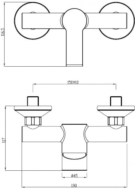 Смеситель имеет опущенный вертикально вниз рычаг регулировки подачи воды, что позволяет его устанавливать в душевых маленьких размеров (80 х 80 см).