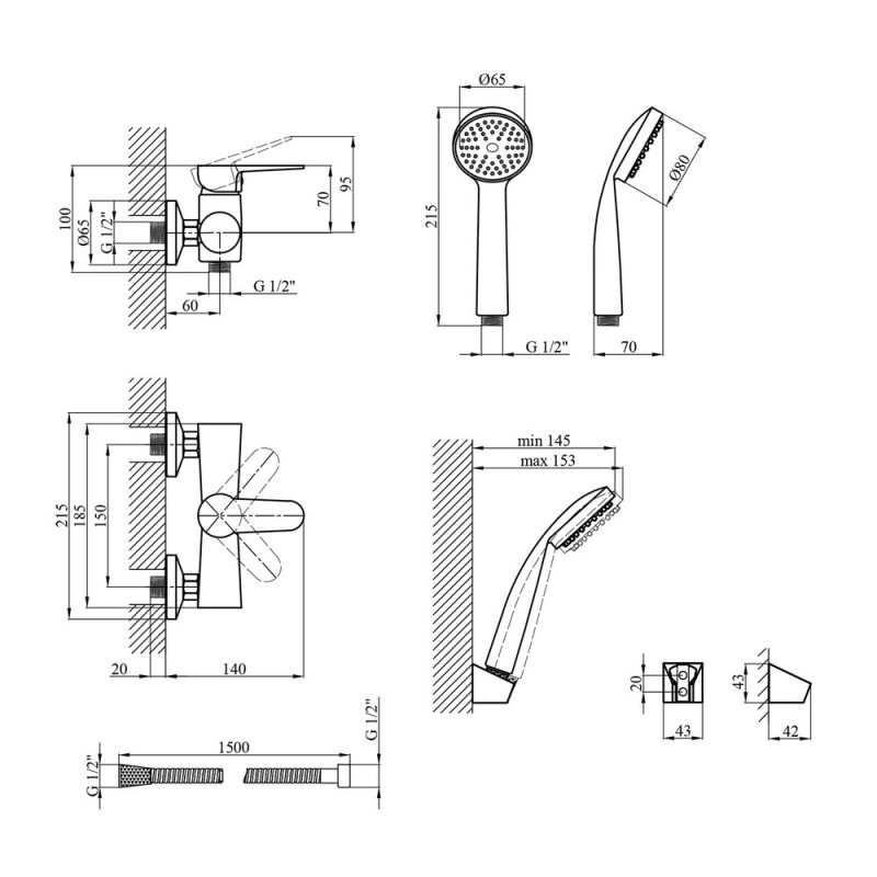 Смеситель для душа Kroner KRM Elbe-C050 с душевым гарнитуром хром CV017354