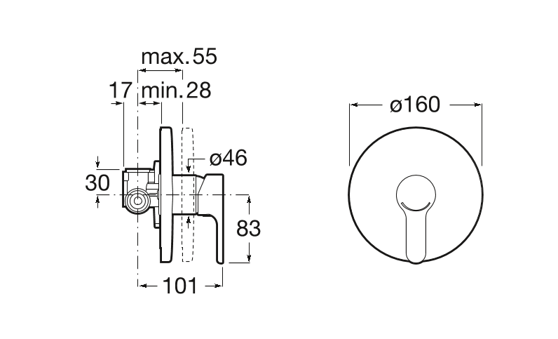 Смеситель для душа однорычажный Roca L20 скрытой установки латунь хром A5A2A09C00