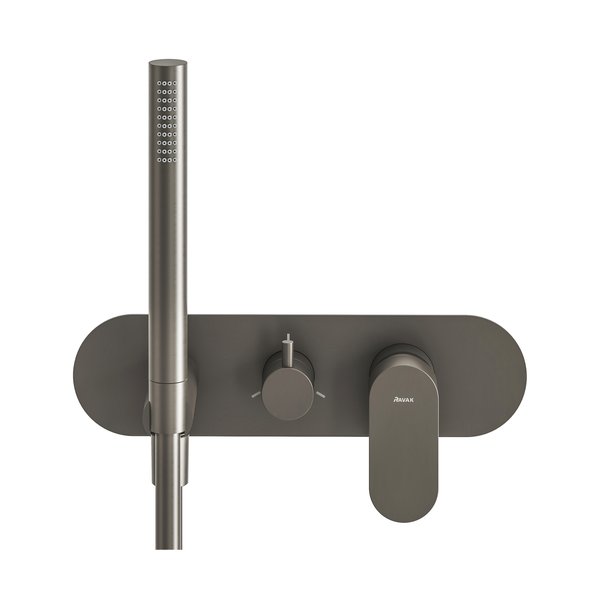 Смеситель для душа Ravak Eleganta на 3 потребителя с душевым набором графит матовый X070333
