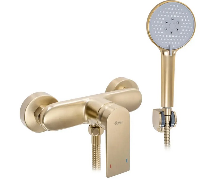 Смеситель для душа Rea Verso с душевым гарнитуром матовое золото