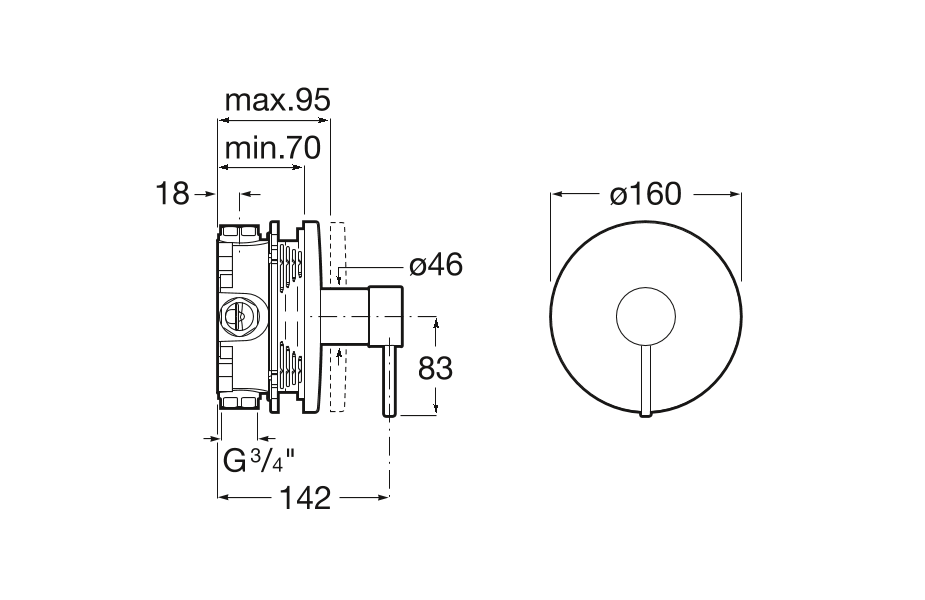 Смеситель для душа Roca Lanta однорычажный (внешняя часть)