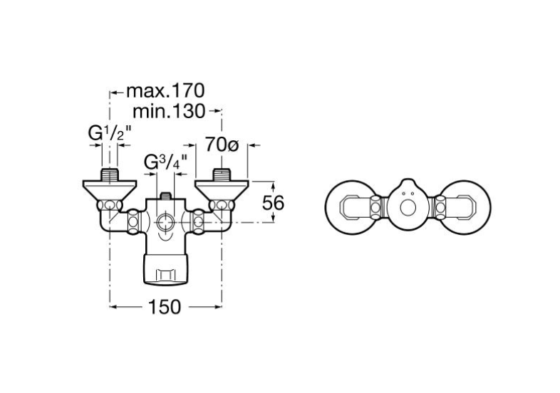 1) Смеситель для душа Roca Sprint нажимной со смещенными соединениями