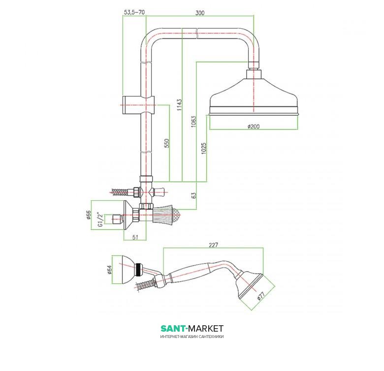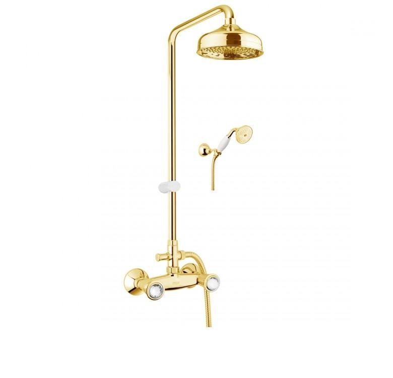 Смеситель для душа с верхней лейкой ручным душем шлангом и держателем Fiore VENERE SKY золото/Swarovski 13OO0620