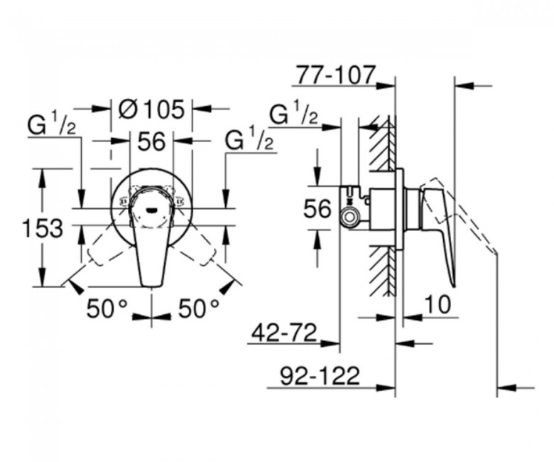Смеситель для душа скрытого монтажа Grohe BauEdge New однорычажный хром 29040001