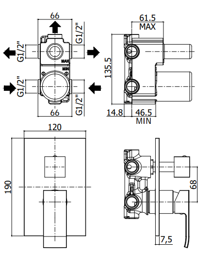 - Комплектация: настенная тарелка 120x190 мм, 1/2 ”G соединения