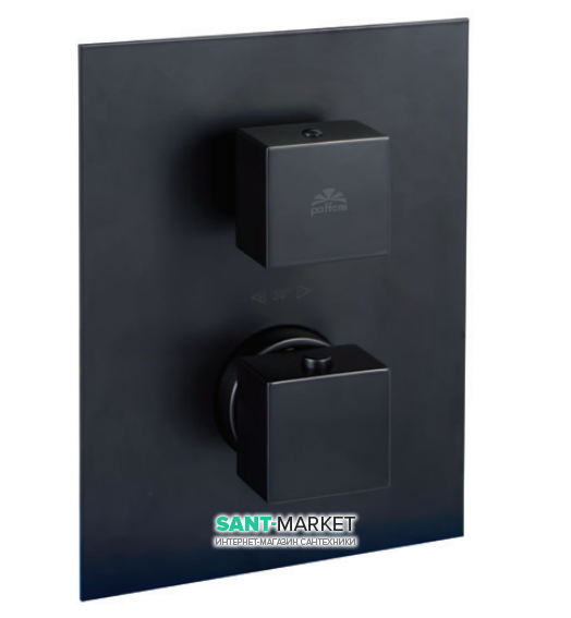 Смеситель для душа Paffoni Elle с термостатом 2 потребителя, скрытый монтаж, в комплекте с внутренней частью металлической настенной панелью, черный матовый.