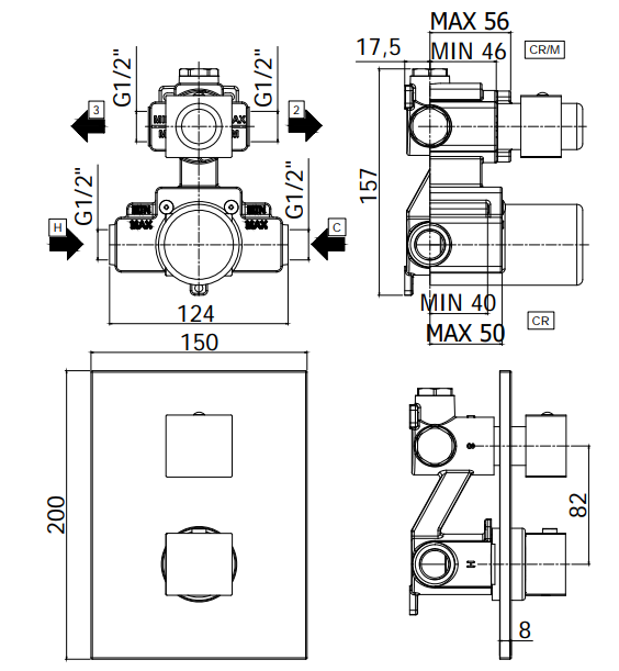 - Комплектация: настенная панель 150x200 мм, 1/2 ”G соединения