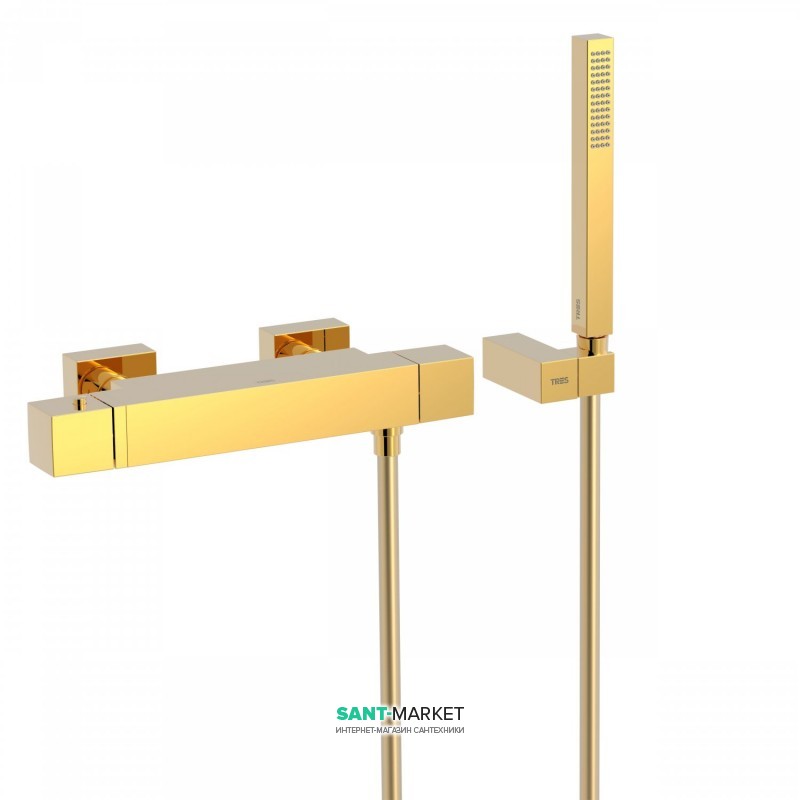 Смеситель для душа термостатический Tres Cuadro colors с ручным душем золото 007164039OR