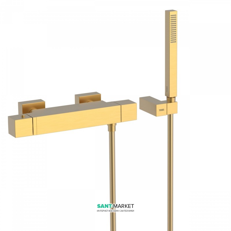 Смеситель для душа термостатический Tres Cuadro colors с ручным душем золото матовый 007164039OM