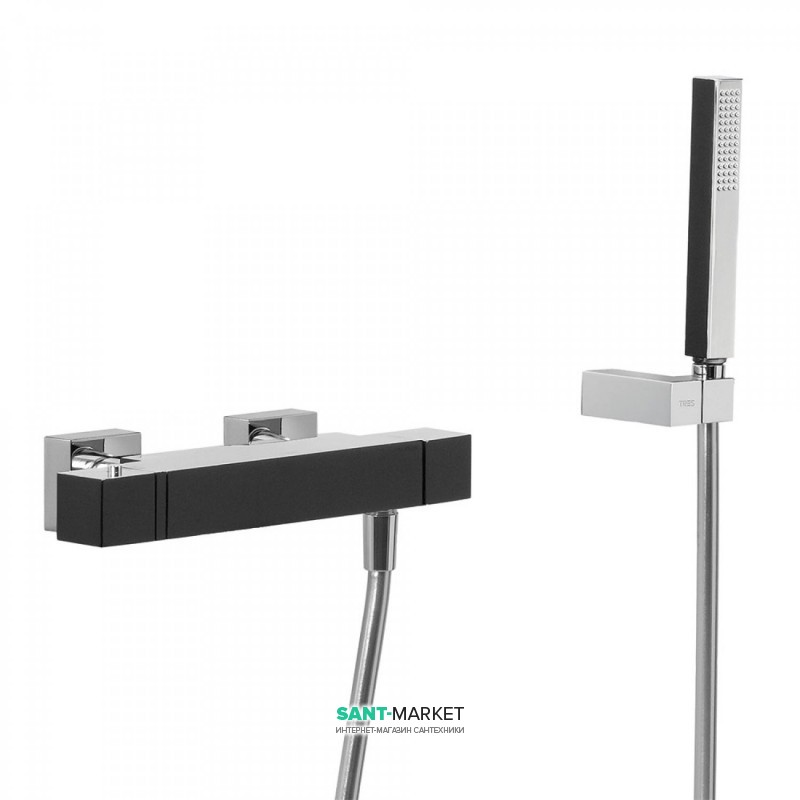 Смеситель для душа термостатический Tres Cuadro colors с ручным душем черный/хром 6071649