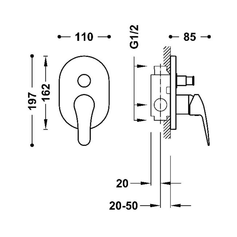 Смеситель для душа Tres Base Plus встраиваемый 2 потребителя хром