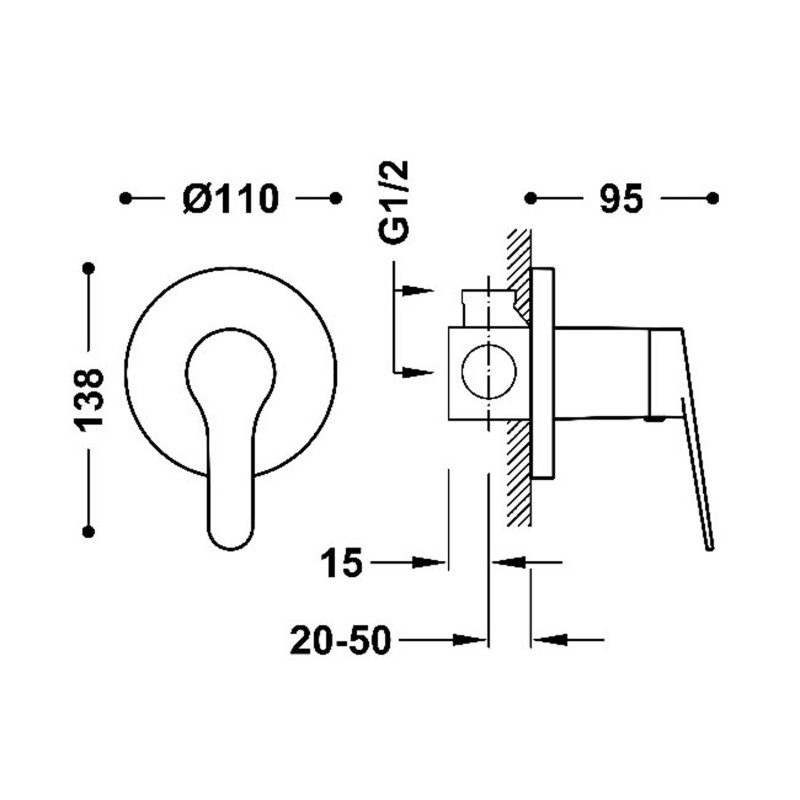 Смеситель для душа Tres Base встраиваемый 1 потребитель хром