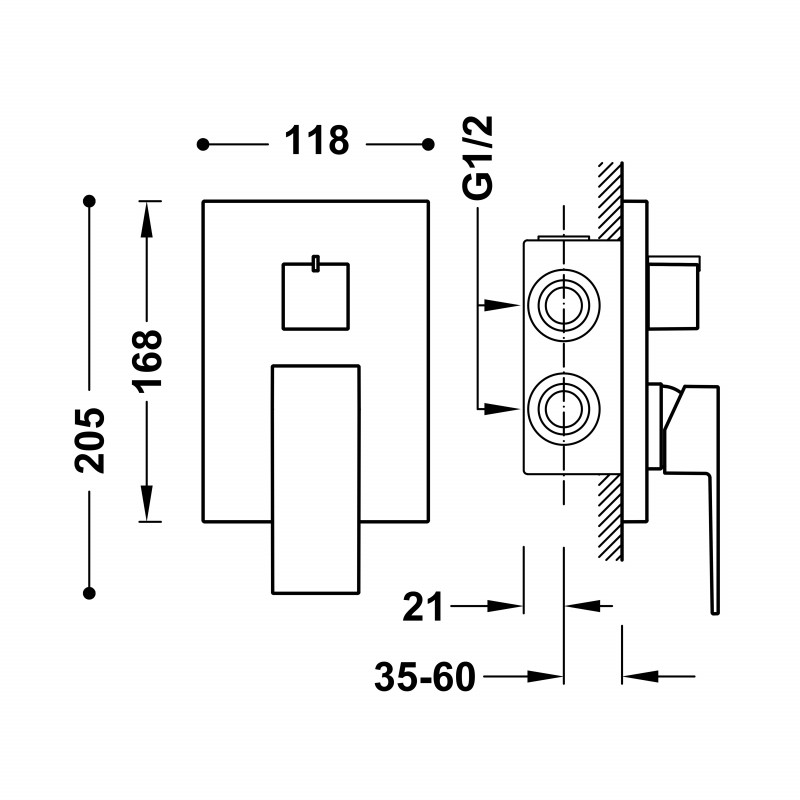 Смеситель для душа Tres Cuadro-Tres (2 канала) встраиваемый однорычажный хром