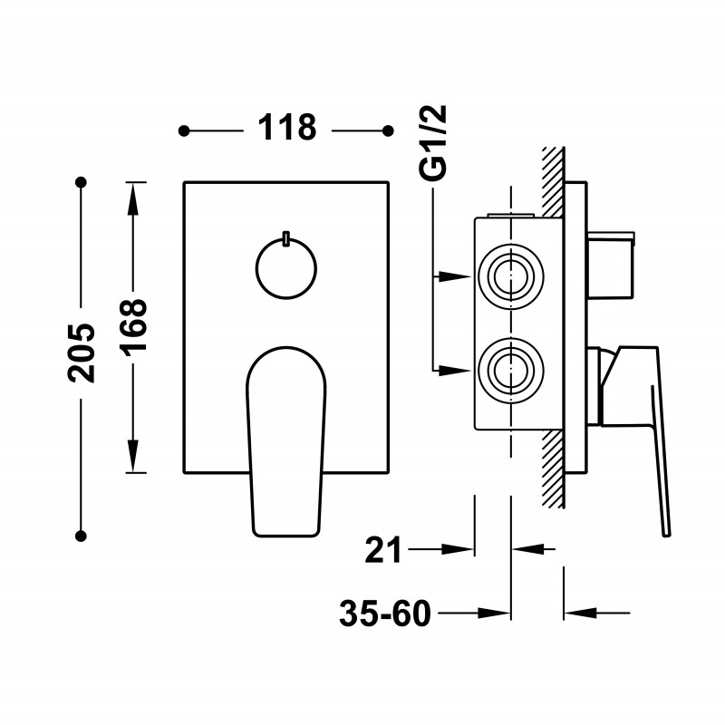 1) Смеситель для душа Tres Project-Tres (2 канала) встраиваемый однорычажный сталь