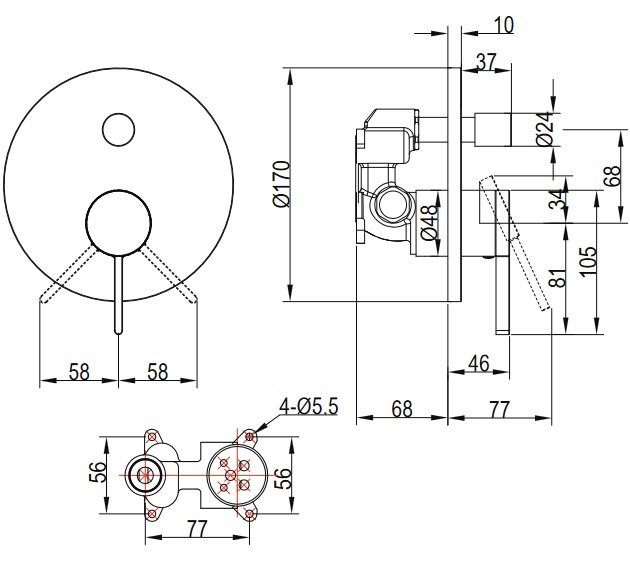 Смеситель для душа Villeroy & Boch Dawn встраиваемый хром TVS10635311061