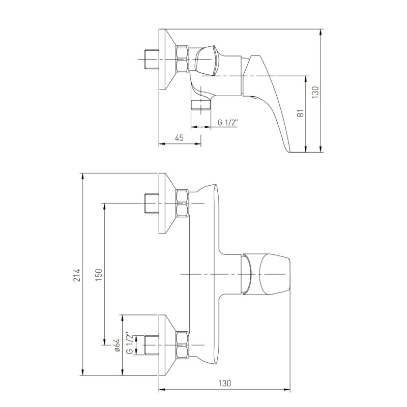 - Нижний отвод для подключения душевого шланга под диаметр 1/2"